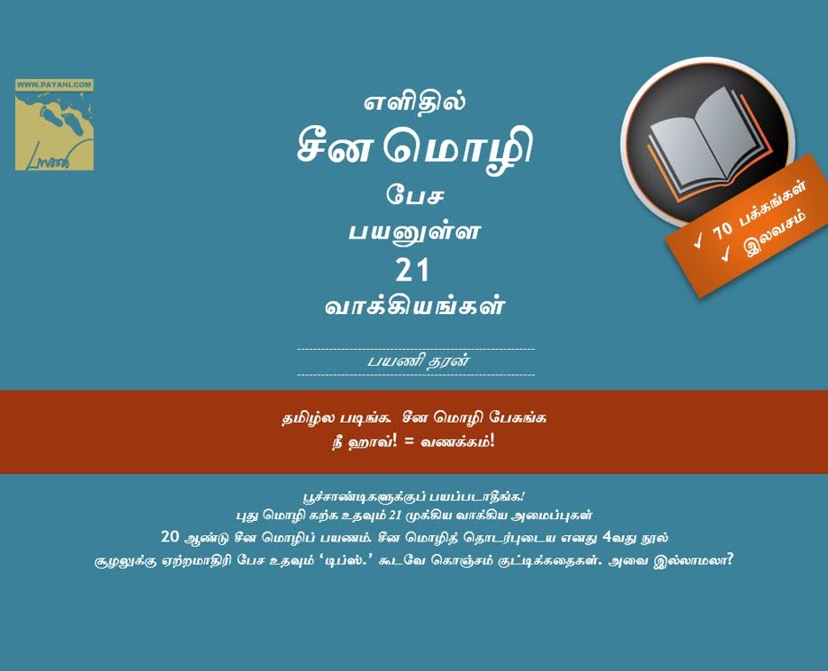 தமிழ் வழியே சீனமொழி பேச கற்றுக் கொடுக்கிறது. (“நீ ஹாவ்” என்றால் “வணக்கம்.”) “சீனம் சித்திரமொழியா?” போன்ற கேள்விகளுக்கும் விடை சொல்கிறது.